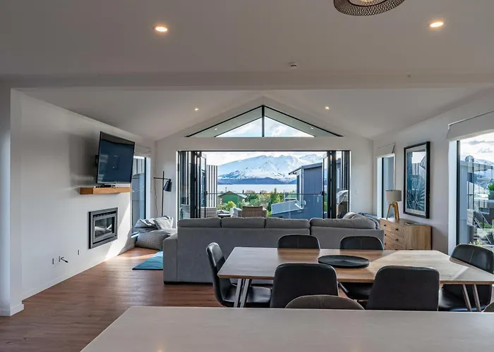 从La Cachette Wanaka酒店可尽览Wanaka湖的美景,gallery thirty three近在咫尺.